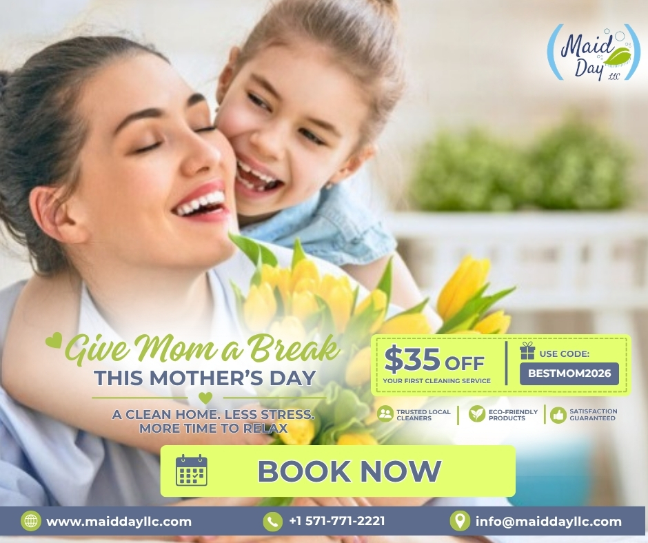 That’s why Maid Day is offering a $35 Mother’s Day Cleaning Special for new clients. Help Mom feel appreciated with a spotless home she’ll love.